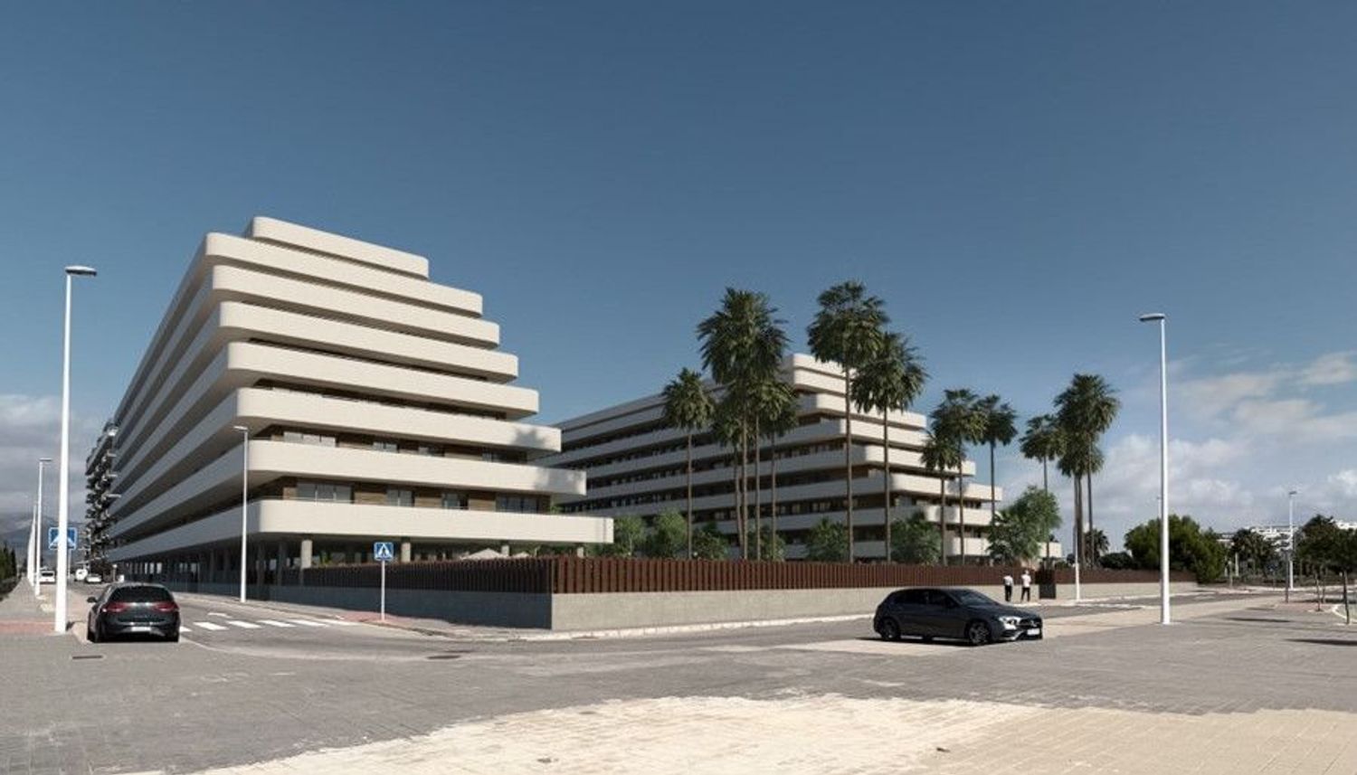 El complejo consta de dos edificios dispuestos de 184 apartamentos y con una superficie ajardinada de 4000 metros en las que se incluyen las piscinas (cada torre tendrá la suya).